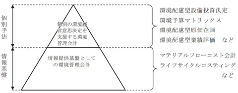 環境と経済を両立する手段として、6つの環境管理会計手法が存在する. その体系を図1に示す(國部,2001 [r5]).