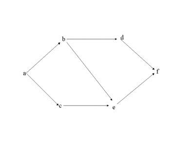 V=\{(a,b),(a,c),(b,d),(b,e),(c,e),(d,f),(e,f) \}