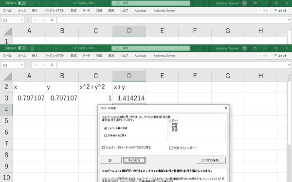 ソルバーの出力は以下の通りであり前期の解析解と同じである.